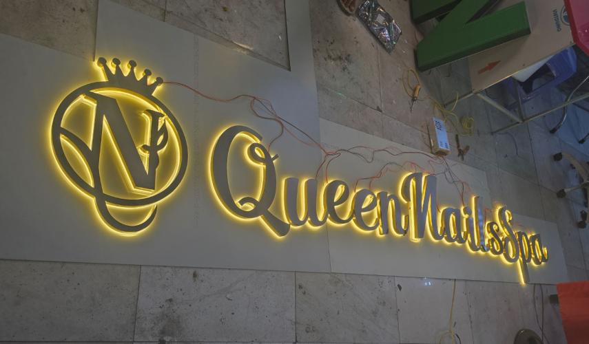LOGO CHỮ INOX NAILS SPA ĐÈN SÁNG CHÂN – GIẢI PHÁP BẢNG HIỆU SANG TRỌNG & ĐẲNG CẤP