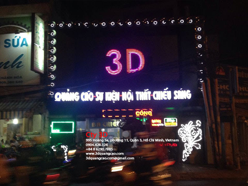 Công ty TNHH Ba Chiều Bạn có muốn “thắp sáng” lên thương hiệu công ty của mình không ? Biển Hiệu được xem là gương mặt đại diện cho một côngy ty, doanh nghiệp… Là hình ảnh đầu tiên mỗi khách hàng nhìn thấy trước khi đặt chân vào bên trong công ty, doanh nghiệp,… của bạn. Một biển hiệu hấp dẫn sẽ thu hút được rất nhiều khách hàng cho bạn. Đặc biệt, các biển hiệu với những ánh đèn đặc sắc sẽ càng làm cho tấm biển thêm hấp dẫn. Chính vì thế, hãy liên hệ với chúng tôi Công ty TNHH Ba Chiều. Đội ngũ thiết kế chuyên nghiệp của chúng tôi sẽ giúp bạn có một tấm biển quảng cáo cực kì hấp dẫn với độ chuyên nghiệp cao. Office: 995 Hoàng Sa, Phường 11, Q.3 TP.HCM, Vietnam Trụ Sở: 219/95 Trần Văn Đang, Phường 11, Q.3 TP.HCM, Vietnam Giấy phép kinh doanh số /MST: 0309728813 Phone: +8486290788 Website: www.3dquangcao.com Email: 3dquangcao.com@gmail.com HotLine: 0904.42.83.24 – 09.077.077.28 NGÂN HÀNG ACB (Chi nhánh Nhiêu Lộc Quận 3) Số TK: 178309139 Chủ TK: Công Ty TNHH Ba Chiều |